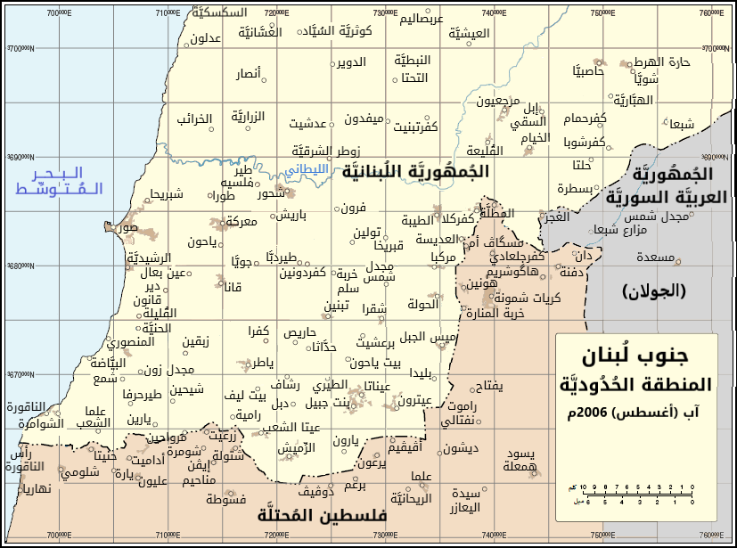 والثالثة من حدود "الخط الأصفر" حتى جنوب نهر الليطاني في أقضية صور والنبطية ومرجعيون وحاصبيا وصولًا إلى بلدتين في البقاع الغربي.